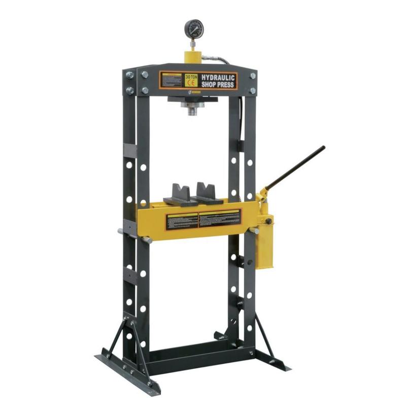 La presse d'atelier hydraulique démontable Euro YD06-014 de 30 tonnes avec jauge est un appareil de qualité industrielle doté d'une conception de style européen, d'une capacité de charge robuste et d'un contrôle précis de la pression. Conçue pour les petits et moyens ateliers avec des contraintes d'espace, cette presse excelle dans des opérations telles que l'ajustement par pression de roulements, le redressage de métaux et le façonnage de pièces.