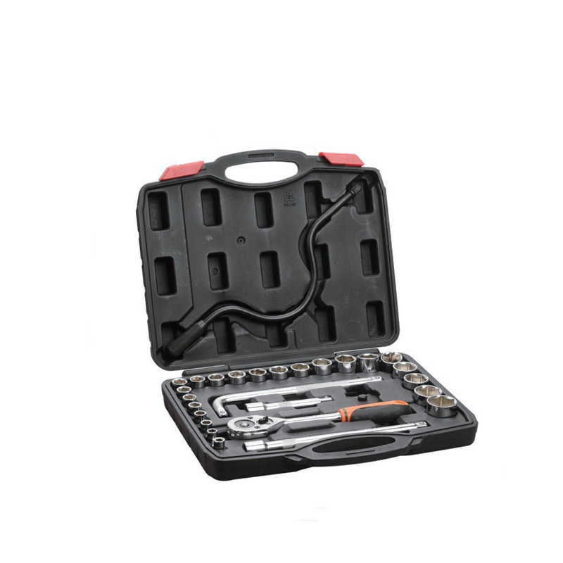 | Composants | 25 douilles 6 pans, 1 douille pour bougie (12"×16"/5/8"), 1 douille pour bougie (12"×21/13/16"), 1 joint universel (1/2"), 1 rallonge (1/2"×5"), 1 rallonge (1/2"×10"), 1 clé à cliquet (1/2"×10") |